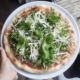 Tomatensaus, mozzerela, rucola, parmezaanse kaas en basilicum