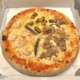 Dubbelgevouwen pizza met tomaat, champignons en gorgonzola