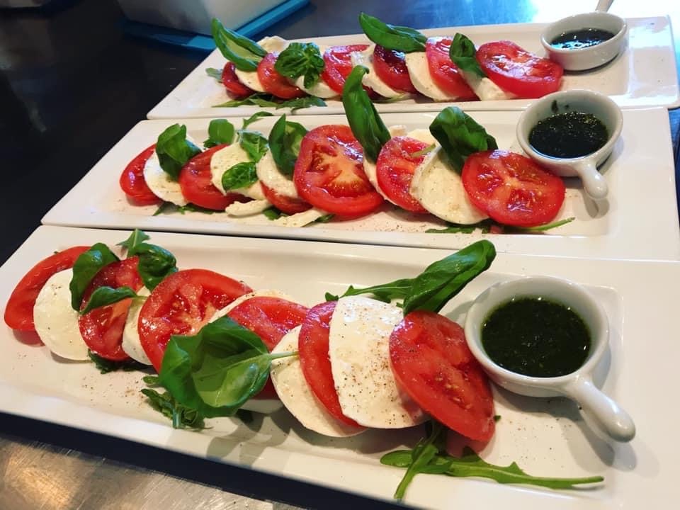 Mozzarella met verse tomaat, pesto en basilicum